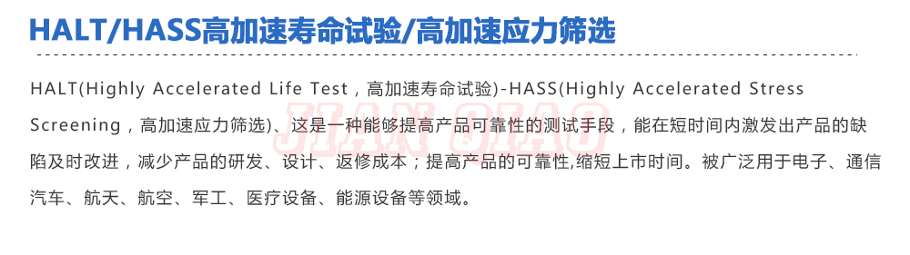 用途:HALT(Highly?Accelerated?Life?Test,高加速壽命試驗(yàn))-HASS(Highly?Accelerated?Stress?Screening,高加速應(yīng)力篩選)、這是一種能夠提高產(chǎn)品可靠性的測試手段,能在短時(shí)間內(nèi)激發(fā)出產(chǎn)品的缺陷及時(shí)改進(jìn)