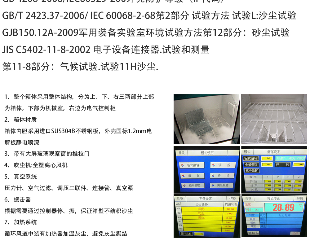 用途:防塵試驗箱適用于防護等級 (IP code), GB/T 4942.2-93(低壓設備防護等級),GB 7000.1(燈具防護等級),DIN40050和IP5K0等校準設計制造。SC-015應用于LED燈具和其它照明產品對IP5X和IP6X防塵等級測試。