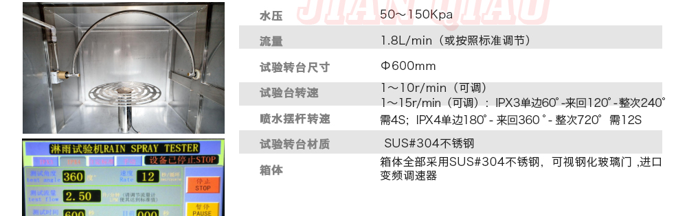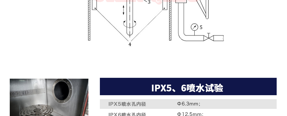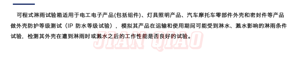 用途:可程式淋雨試驗箱適用于電工電子產(chǎn)品(包括組件)、燈具照明產(chǎn)品、汽車摩托車零部件外殼和密封件等產(chǎn)品做外殼防護(hù)等級測試(IP 防水等級試驗),模擬其產(chǎn)品在運輸和使用期間可能受