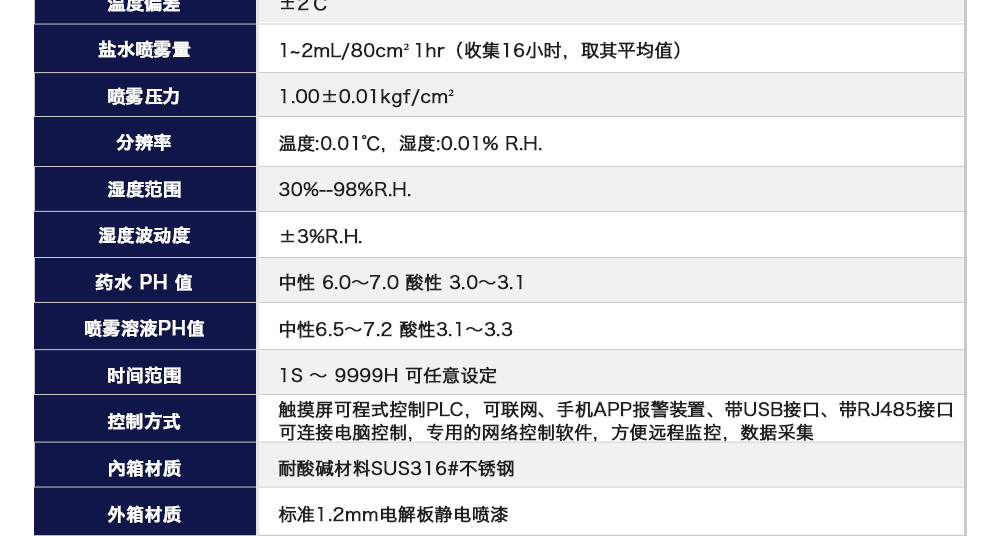 用途:復合鹽霧試驗箱是測試蓄電池包或系統(tǒng)外殼在一定濃度下放置一定時間,其耐腐蝕程度同時也可用于各種材質(zhì)之表面經(jīng)電鍍、陽極處理、噴涂、防銹油等腐蝕處理后,測試其制品之耐蝕