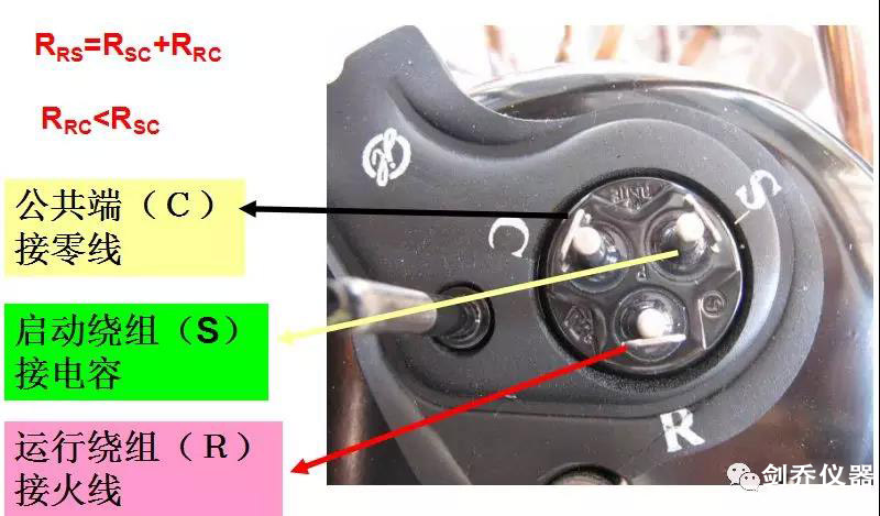 運(yùn)行端(R),啟動端(S),公共端(C),RS間的電阻大于SC間的電阻大于RC間的電阻。RS間電阻等于SC間電阻加RC間的電阻。利用上述規(guī)律可以予以判別。需要說明的是三相壓縮機(jī)的接線端子電阻值是相等的。