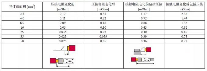 2.2.3 電壓降測試:該項測試是為了確定在標(biāo)稱電流狀態(tài)下由于導(dǎo)線壓接和接觸面區(qū)域的電阻而產(chǎn)生的電壓降。可以根據(jù)電壓降計算出總連接電阻。根據(jù)不同的線束規(guī)格,線束的壓接點的接觸電阻可參看表3: